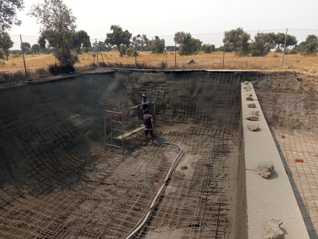Balsas y depósitos para alojar líquidos, purines, etc. ejecutados con el sistema de hormigón proyectado en vía húmeda, de esta manera evitamos las filtraciones de los mismos y aseguramos su estructura.